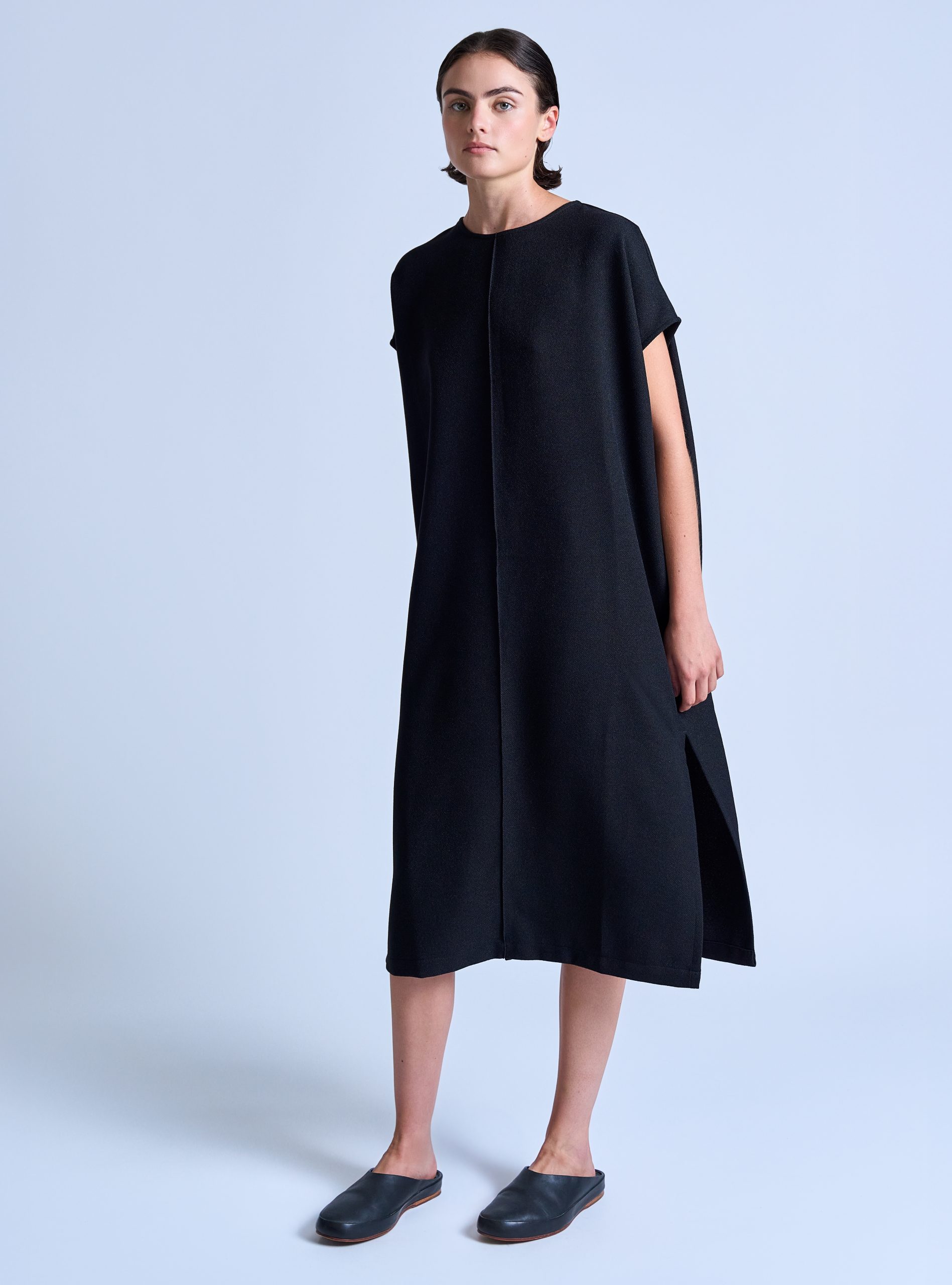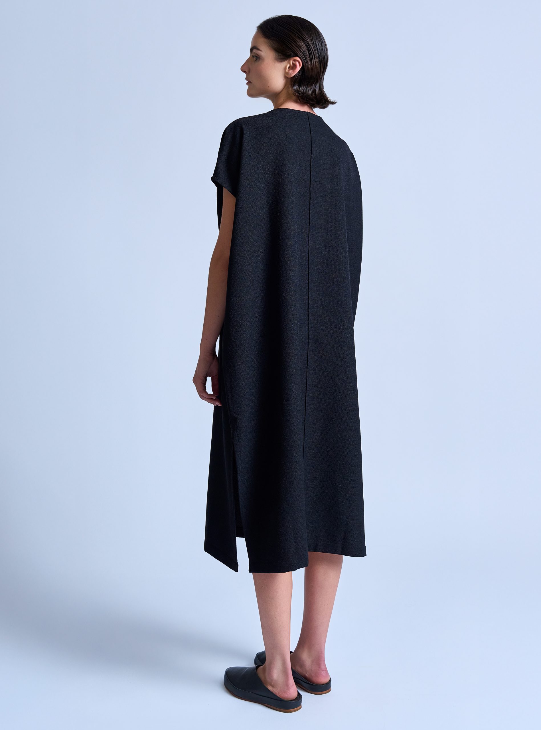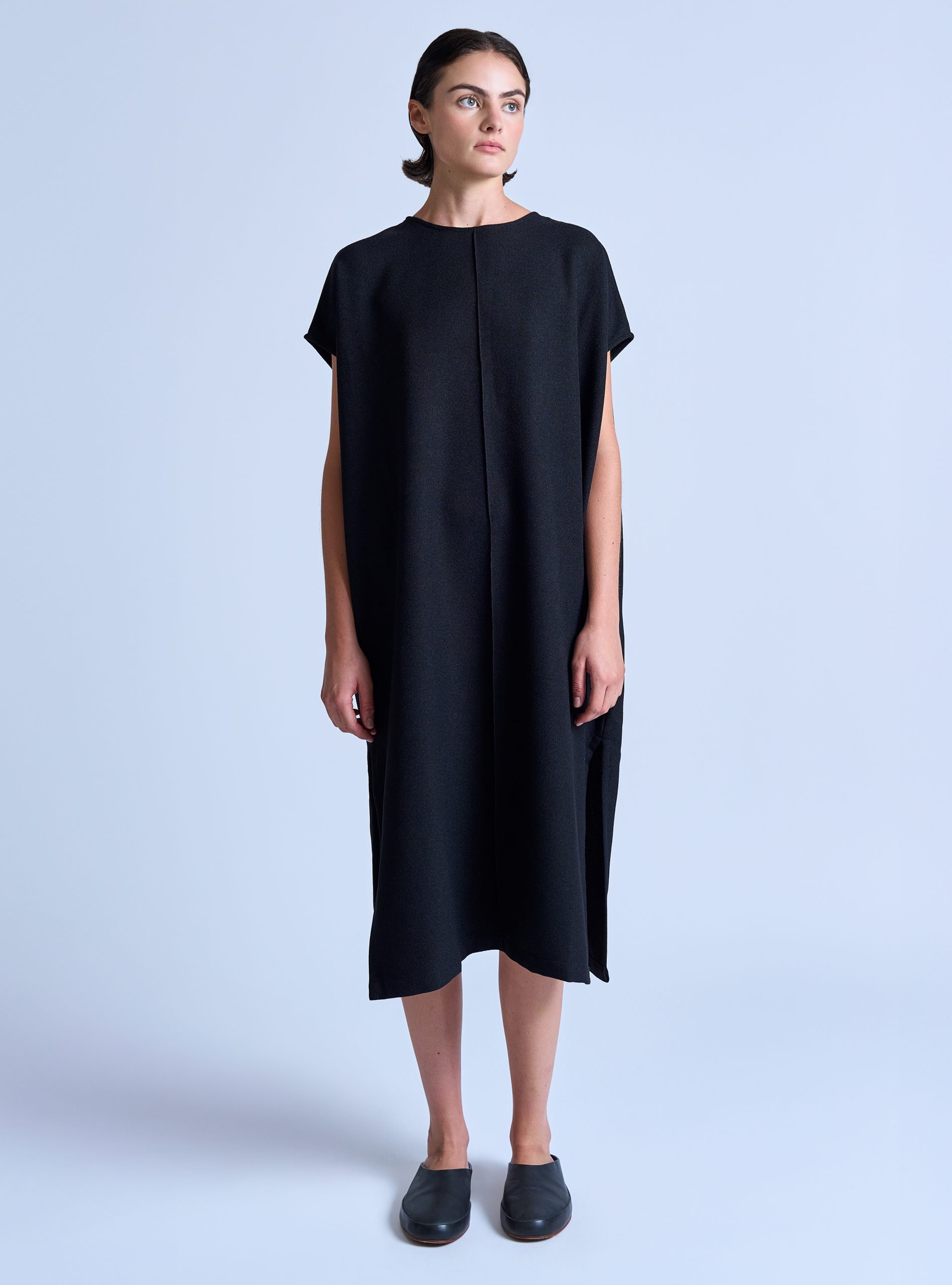 Ancient meets modern. The Chiton Tie Dress reinterprets the classic greek garment. It’s constructed of a Japanese crepe fabric that provides drape while maintaining its shape. A belt provides options to wear relaxed or tied for a different silhouette.