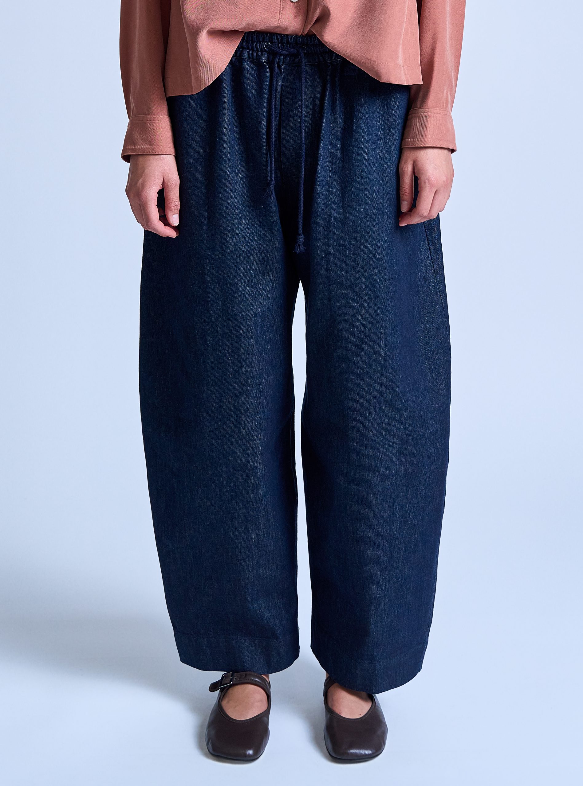Baggy, Refined. The East Pant is a modern update to our bestselling Ovate Baggy Pant, now reworked in washed denim for a soft, lived-in feel. Cut with a fuller leg and longer length, it creates a clean, elongated silhouette. The unisex fit maintains a relaxed structure, offering everyday comfort with added texture and weight suited for year-round wear.