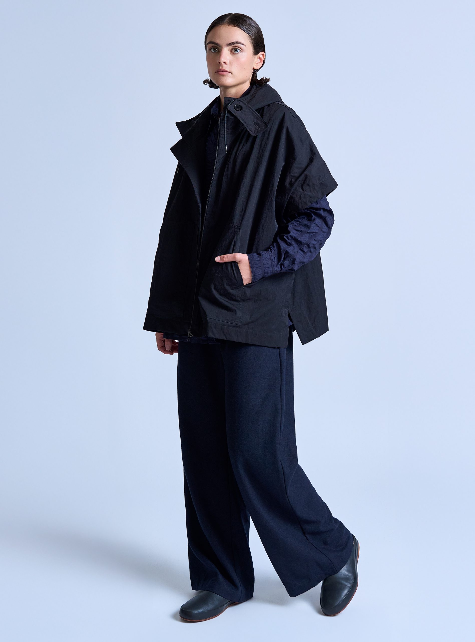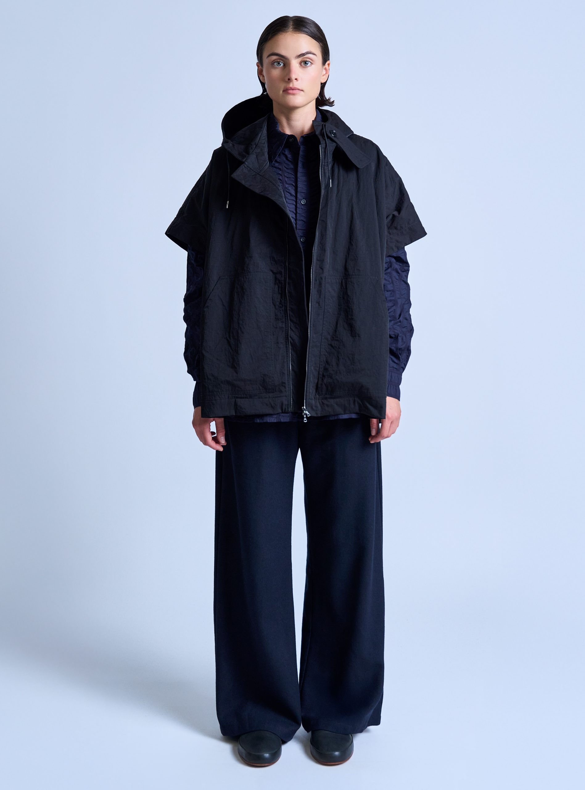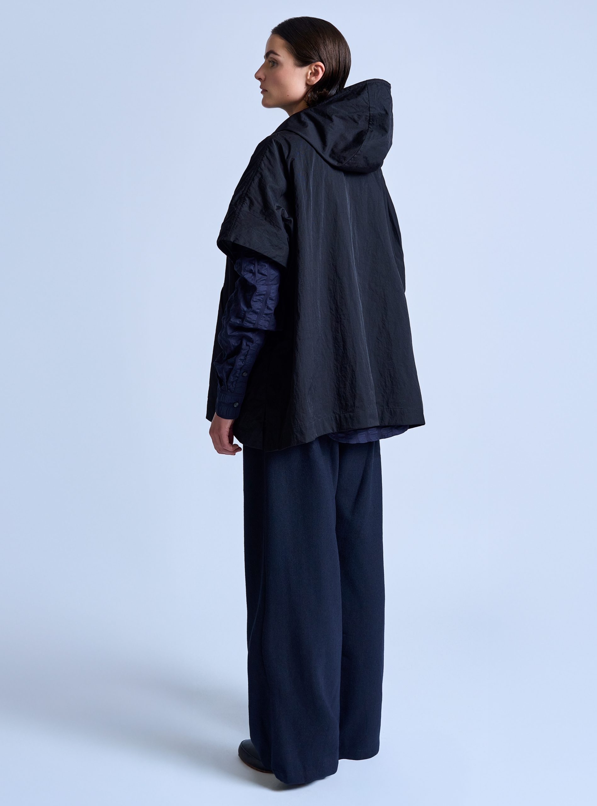 TRACKER PONCHO IN BLACK NYLON TWILL