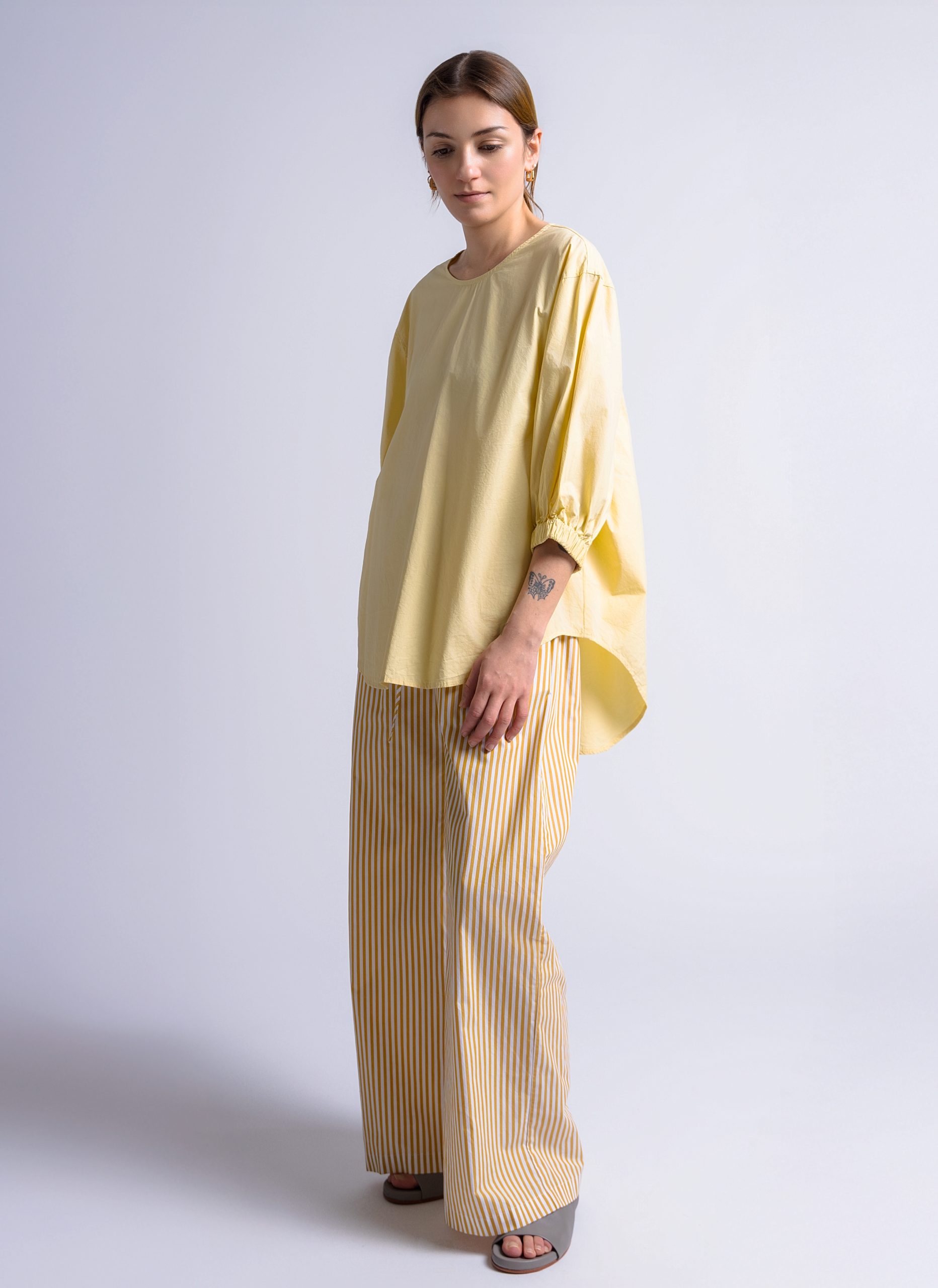 VIRAGO TOP IN PALE YELLOW ENZYME WASHED POPLIN