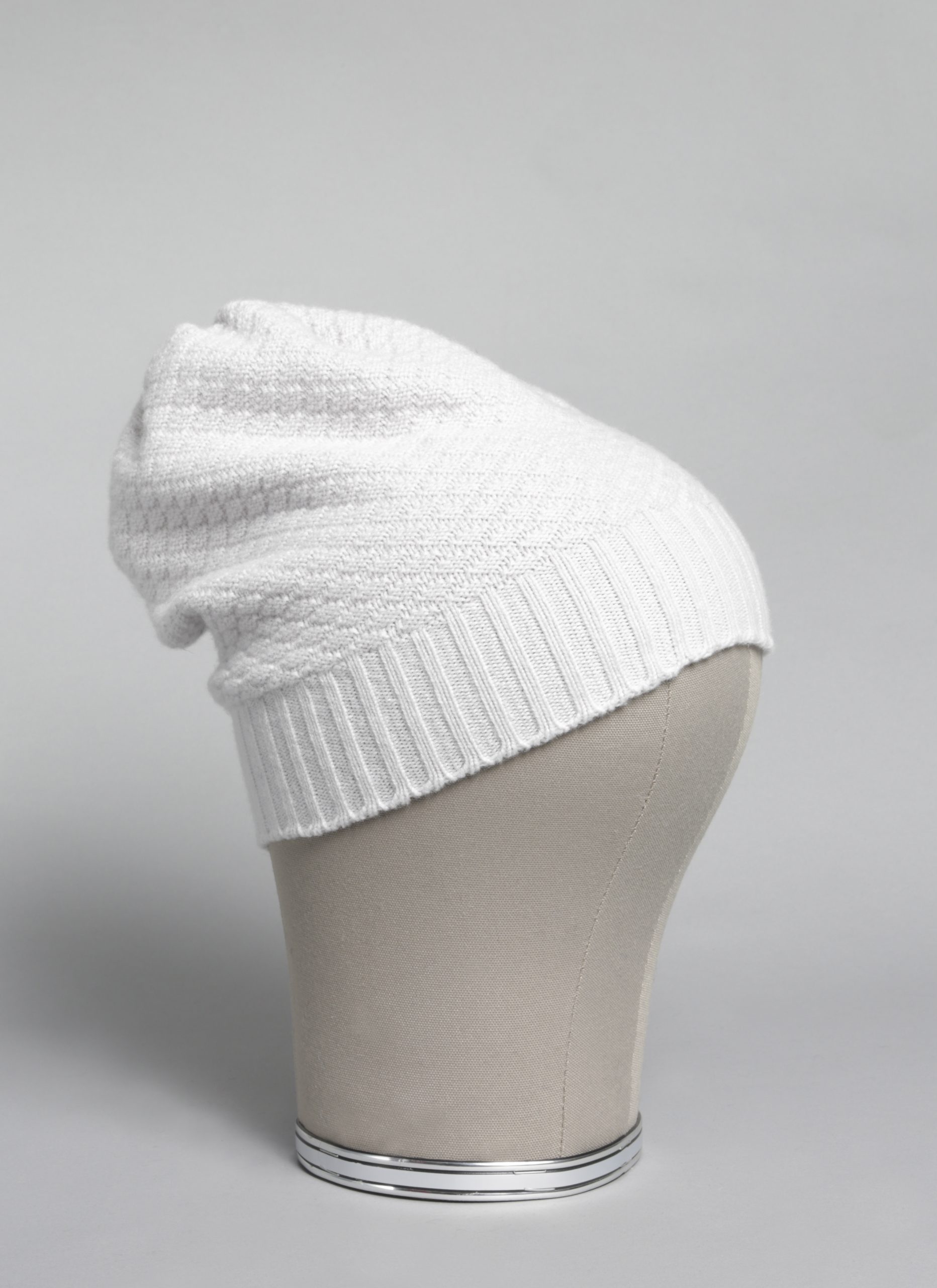 Cashmere Slouchy Beanie in Stone – Side View | Cashmere Slouchy Beanie in Stone – Side View
