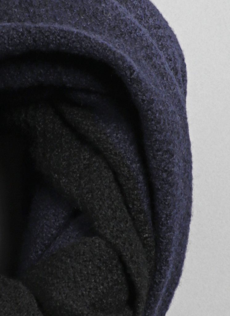 Cashmere Moss Stitch Two-Tone Circular Scarf in Midnight Blue & Black – Close Up | Cashmere Moss Stitch Two-Tone Circular Scarf in Midnight Blue & Black – Close Up