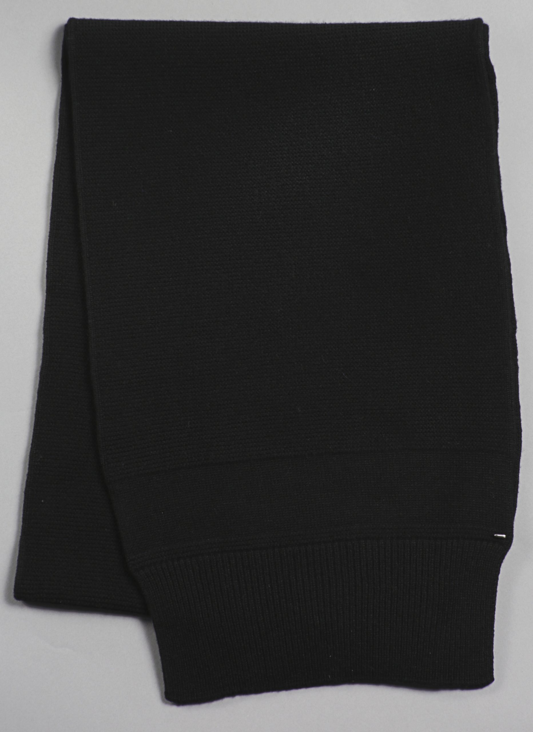 Cashmere Garter Stitch Rectangular Scarf in Black – Front View | Cashmere Garter Stitch Rectangular Scarf in Black – Front View