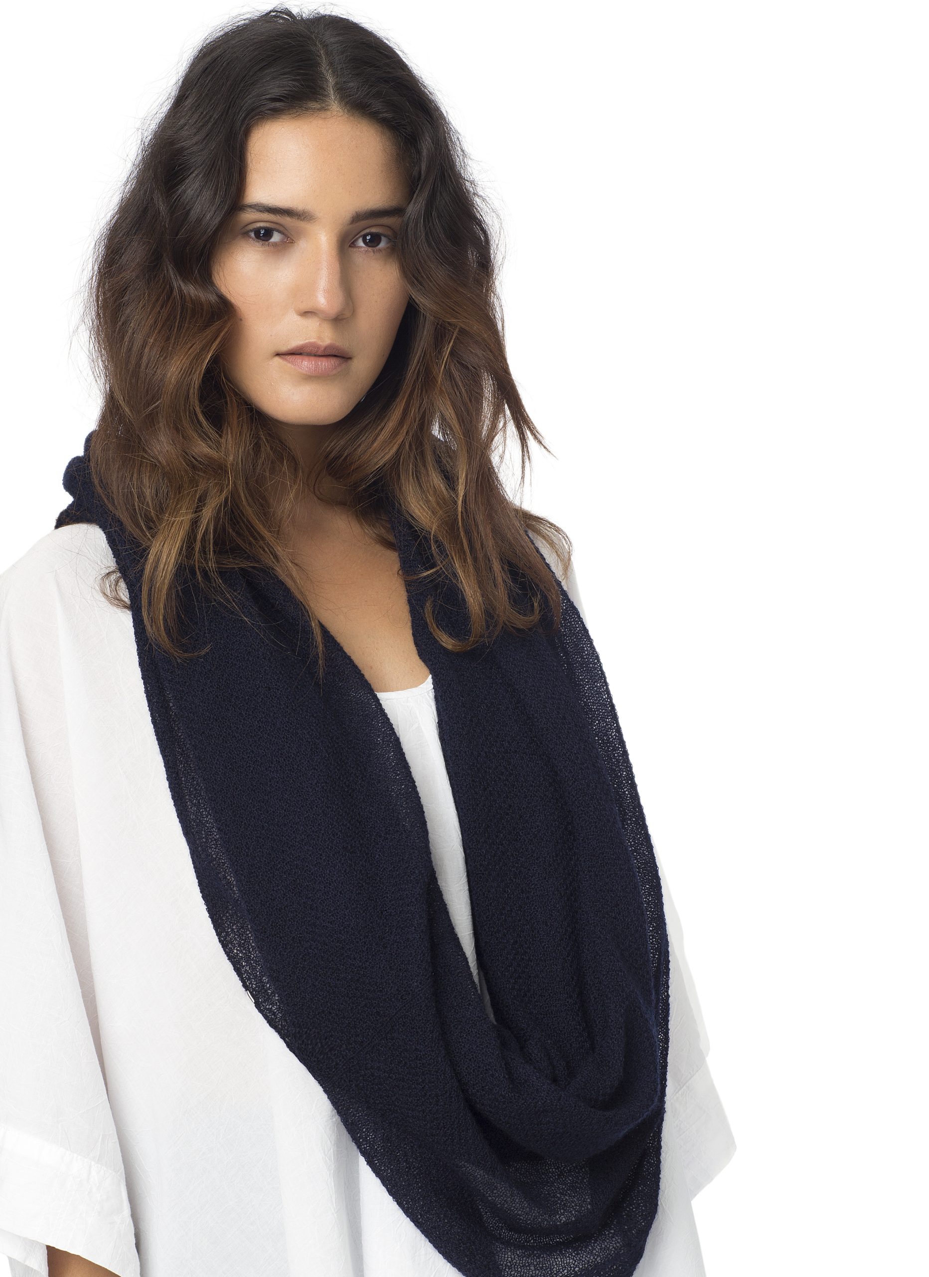 Silk Cashmere Circular Scarf in Midnight Blue – Side View | Silk Cashmere Circular Scarf in Midnight Blue – Side View