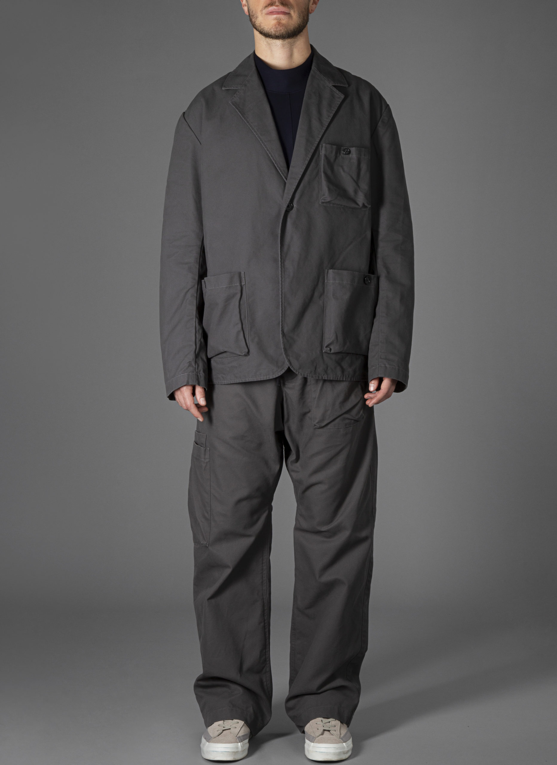 SJCCCH01-SackPocketOneButtonJacketInCharcoalCanvas-01 | SJCCCH01-SackPocketOneButtonJacketInCharcoalCanvas-01
